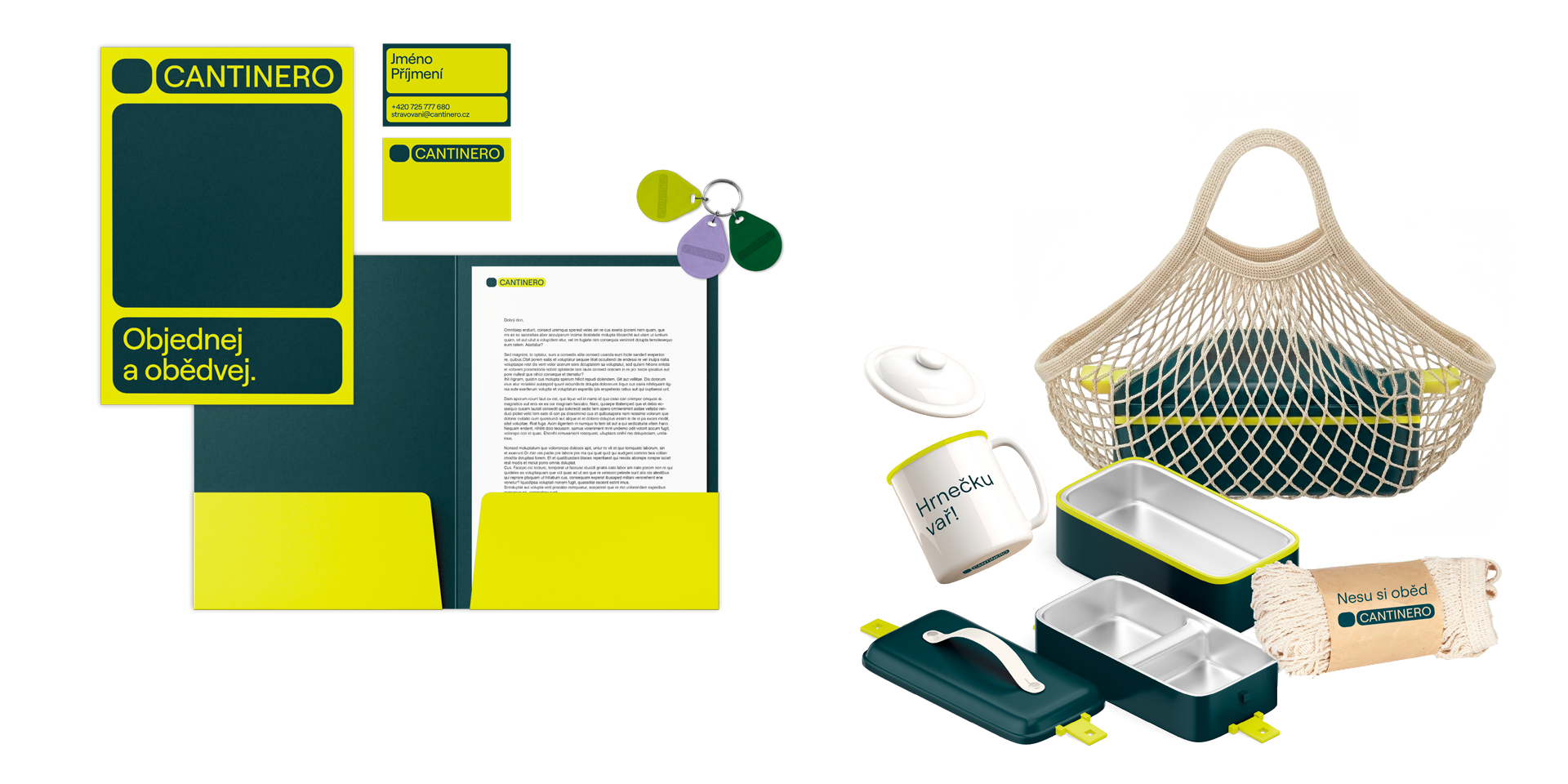 Boxy a rámečky se volně skládají, doplňují a překrývají. Vytvářejí variabilní layouty, které působí organizovaně a zároveň hravě. Inspirací byl samotný provoz jídelen. Výsledkem je funkční a zapamatovatelná identita, která se snadno přizpůsobuje různým formátům — od tištěných materiálů po digitální prostředí telefonní aplikace.