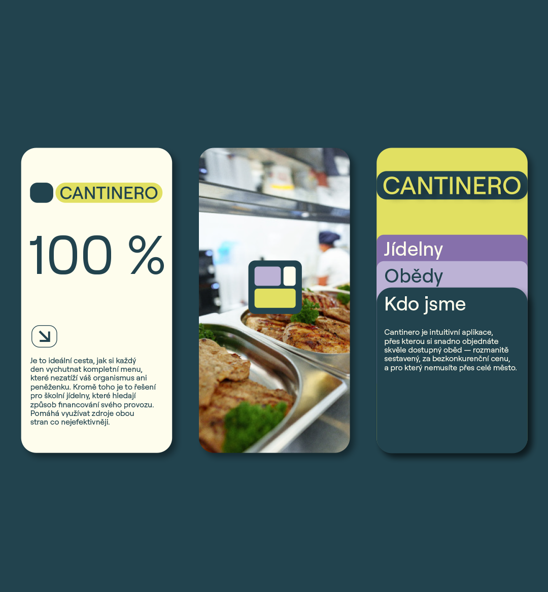 Cantinero je aplikace, která propojuje lidi hledající dostupný a kvalitní oběd s jídelnami v jejich okolí. Nabízí jednoduchý způsob, jak si každý den objednat jídlo — rychle, lokálně a za dostupnou cenu. Zároveň pomáhá jídelnám efektivněji využít jejich kapacity.